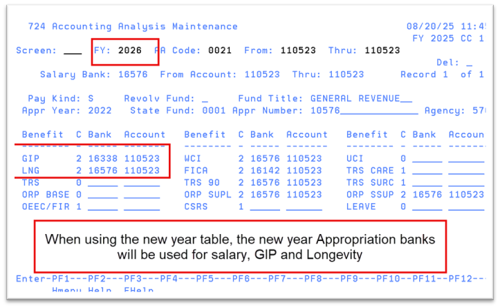 Note that state payroll funded from non-GR funds usually do not have separate GIP appropriations and are also likely able to carry those funds forward. Using the correct appropriation year is less of a significant issue with these non-GR funds.