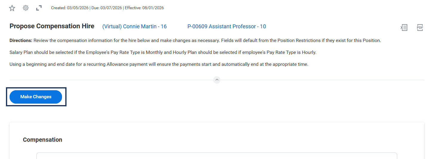 - To make changes to the Compensation Plan select the Make Changes button on the Inbox item.