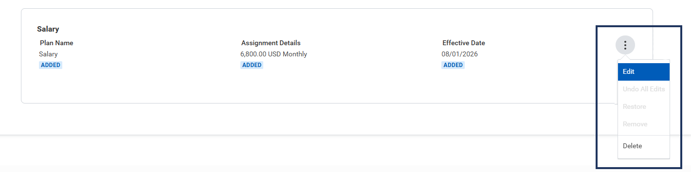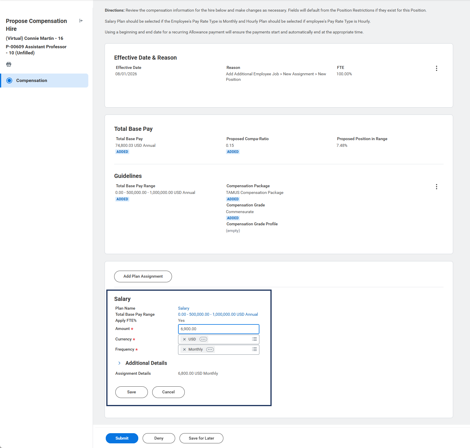 - After making your changes in the Salary section, ensure the salary listed in the Total Base Pay section at the top of the page is correct with your changes.