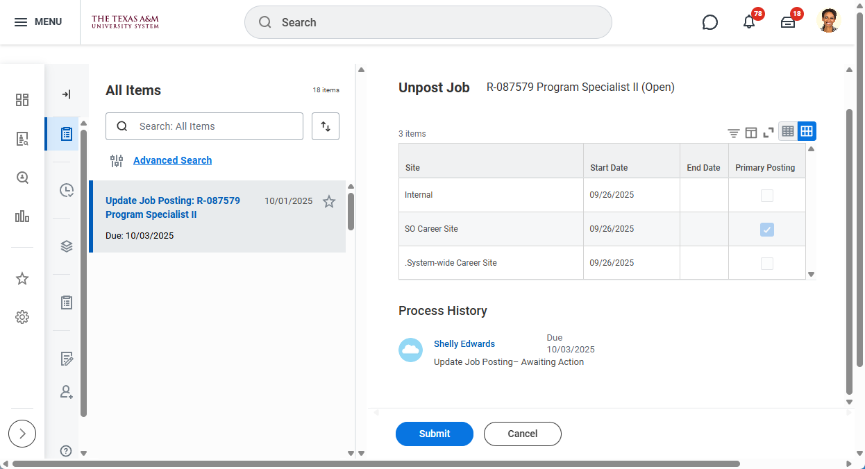 - Closing a requisition does not remove it from the internal or external career site. You must use the Unpost Job business process to remove the listings.
