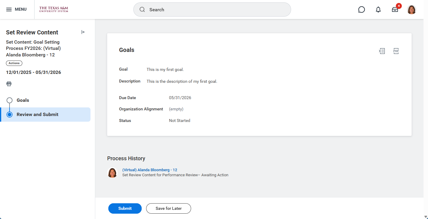 Your manager in Workday will receive an inbox task to review your goals. They will either edit, approve or send back the goals.