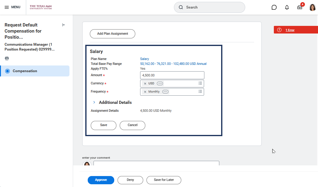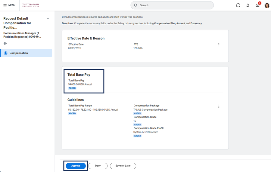 Once approved, the Request Default Compensation for Position Event inbox item will be archived.