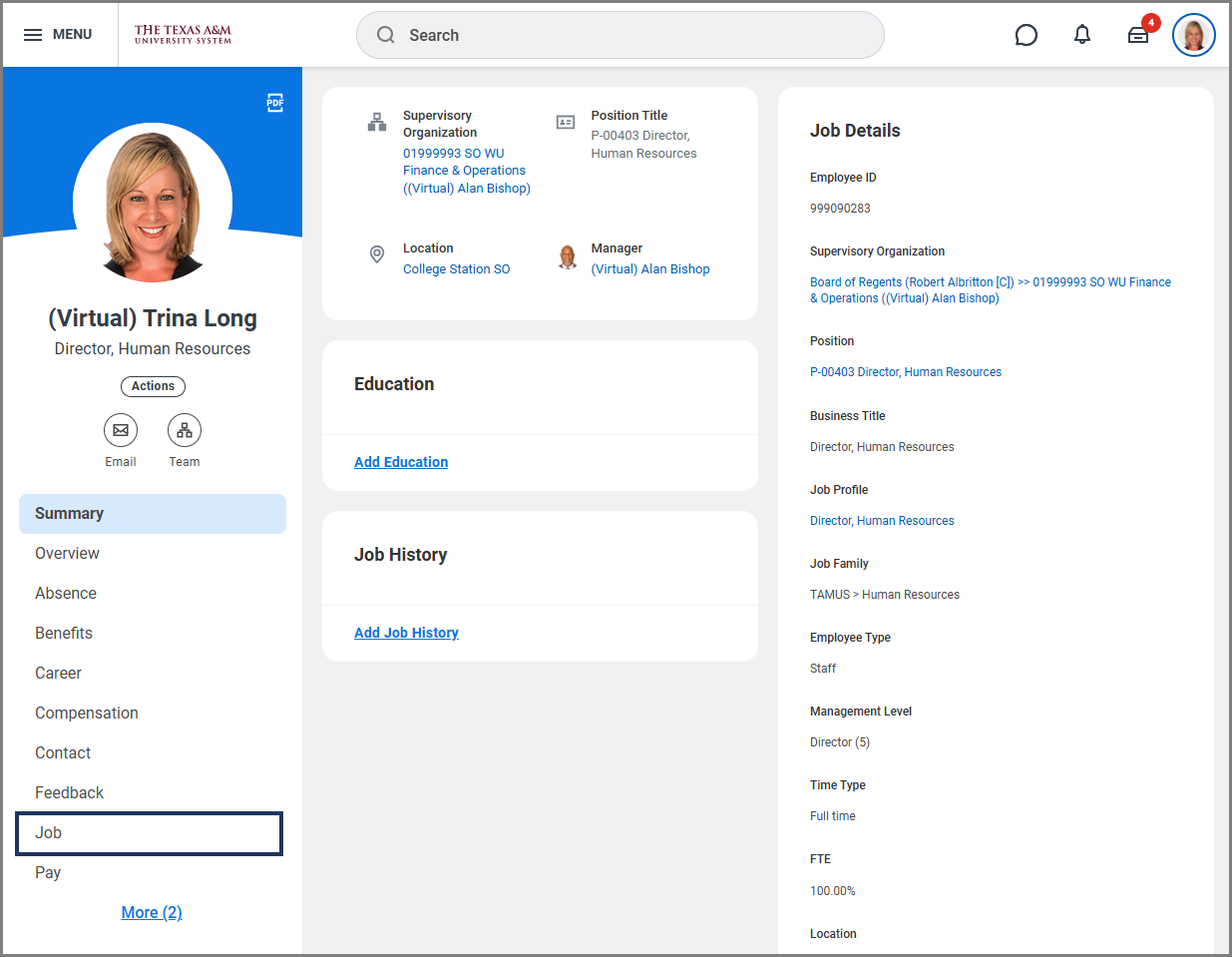 - Navigate to your Worker Profile or the Worker Profile of an employee you manage.